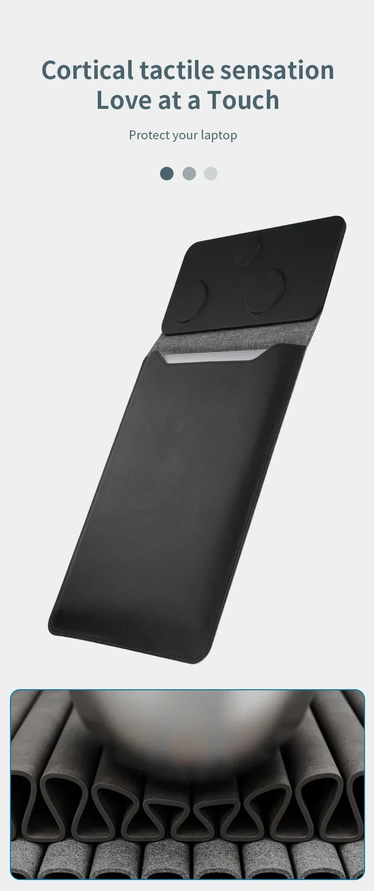 Crafted with premium leather + cloth, the sleeve provides full surround protection, magnetic adsorption for stability, and shock-absorbing lining to safeguard your laptop.