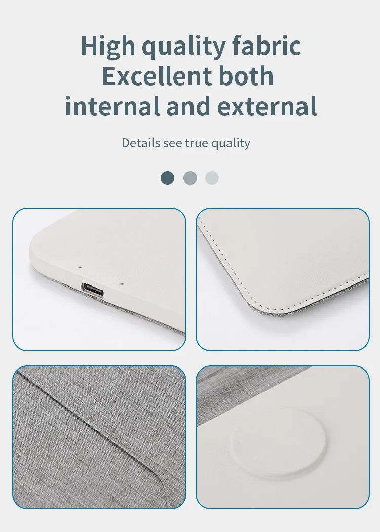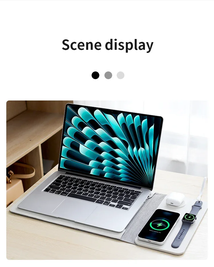 - Multi-Function Design – Laptop sleeve + mouse pad + 3-in-1 wireless charger.