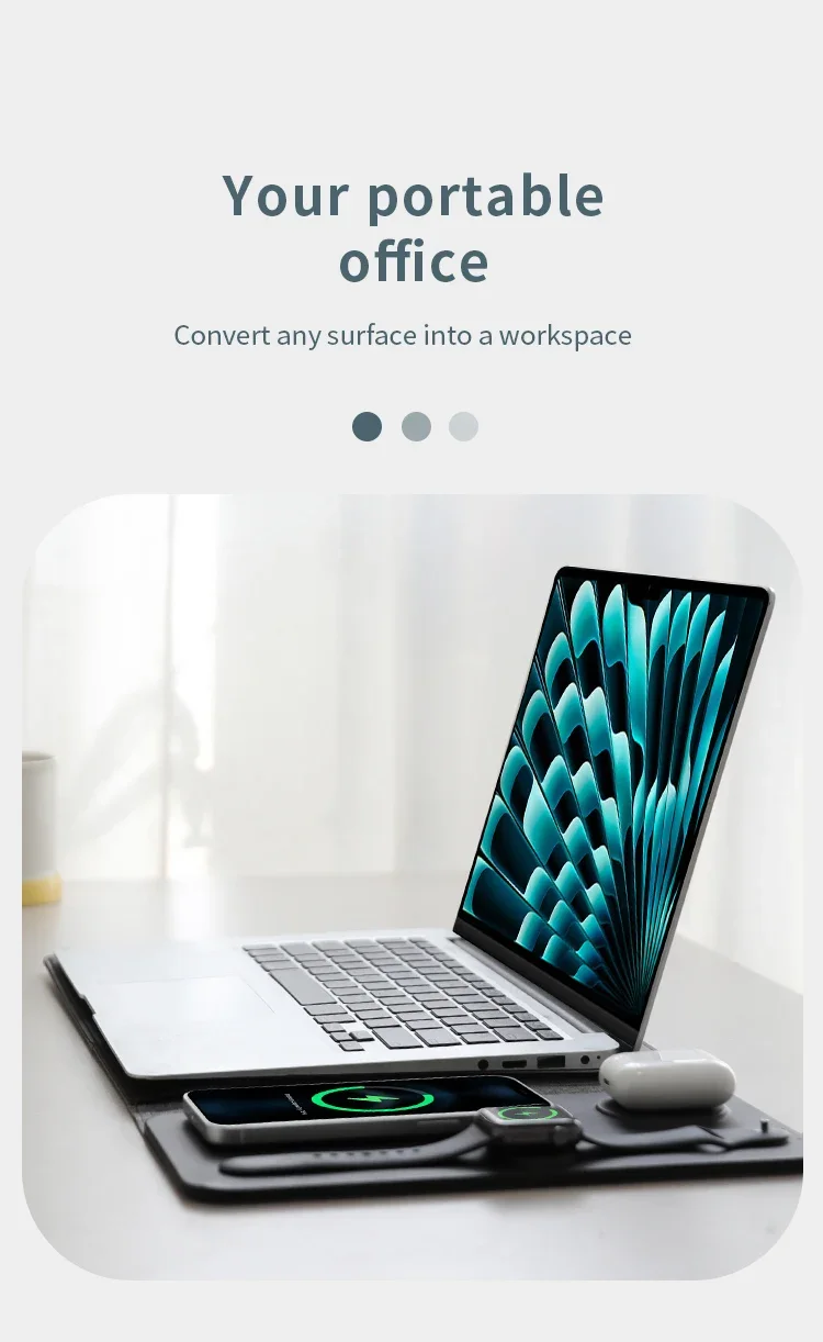 Laptop sleeve + mouse pad + 3-in-1 wireless charger.