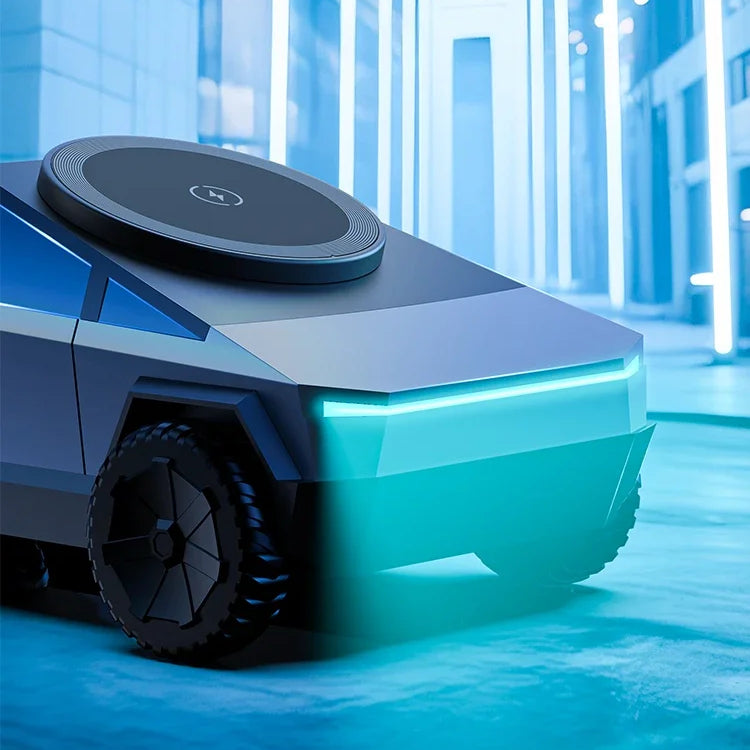 Unique Cybertruck-inspired charging dock that doubles as a statement piece on any desk or nightstand.
