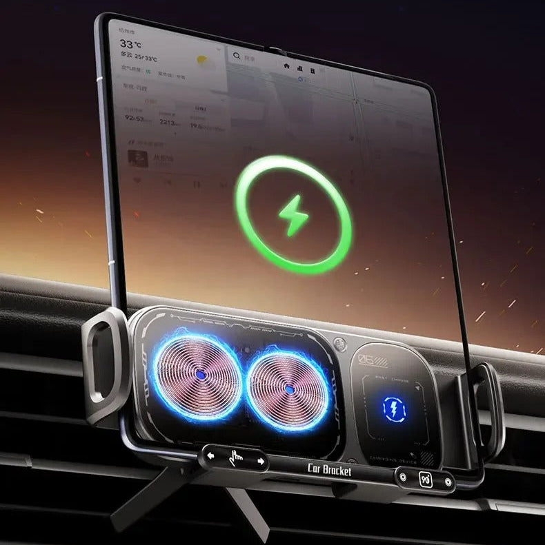 Dual-coil power for foldables, tablets & phones. Charge safely, even on bumpy roads.