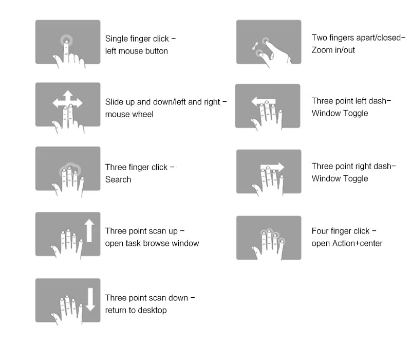 Enhance your workflow with intuitive multi-touch gestures. Easily switch between tasks, zoom, scroll, and navigate using simple finger movements—designed for efficiency and convenience.