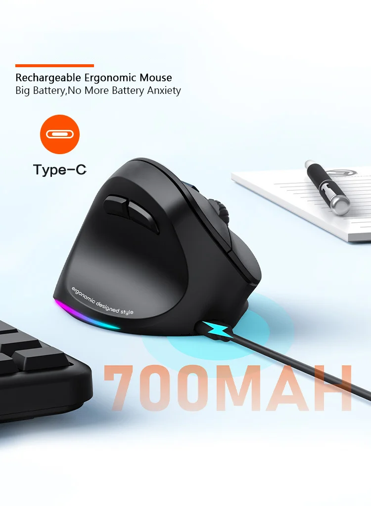 Left Hand Ergonomic Wireless Vertical Mouse for Left-Handed Users
