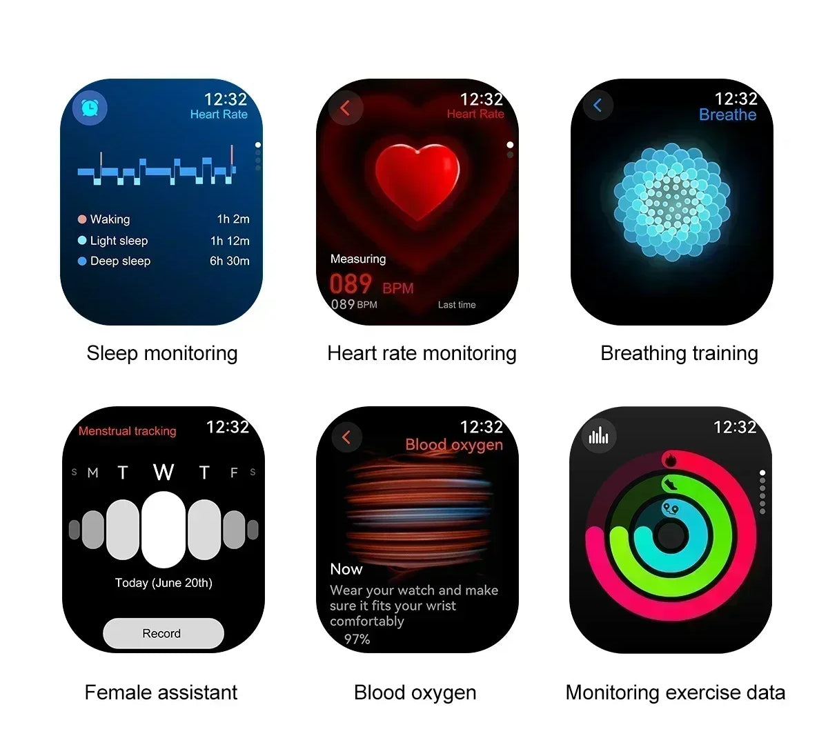 Stay on top of your wellness with 24/7 heart rate, SpO2, and blood pressure monitoring. Track your sleep quality, menstrual cycle, and even breathing exercises to maintain a healthier daily routine.