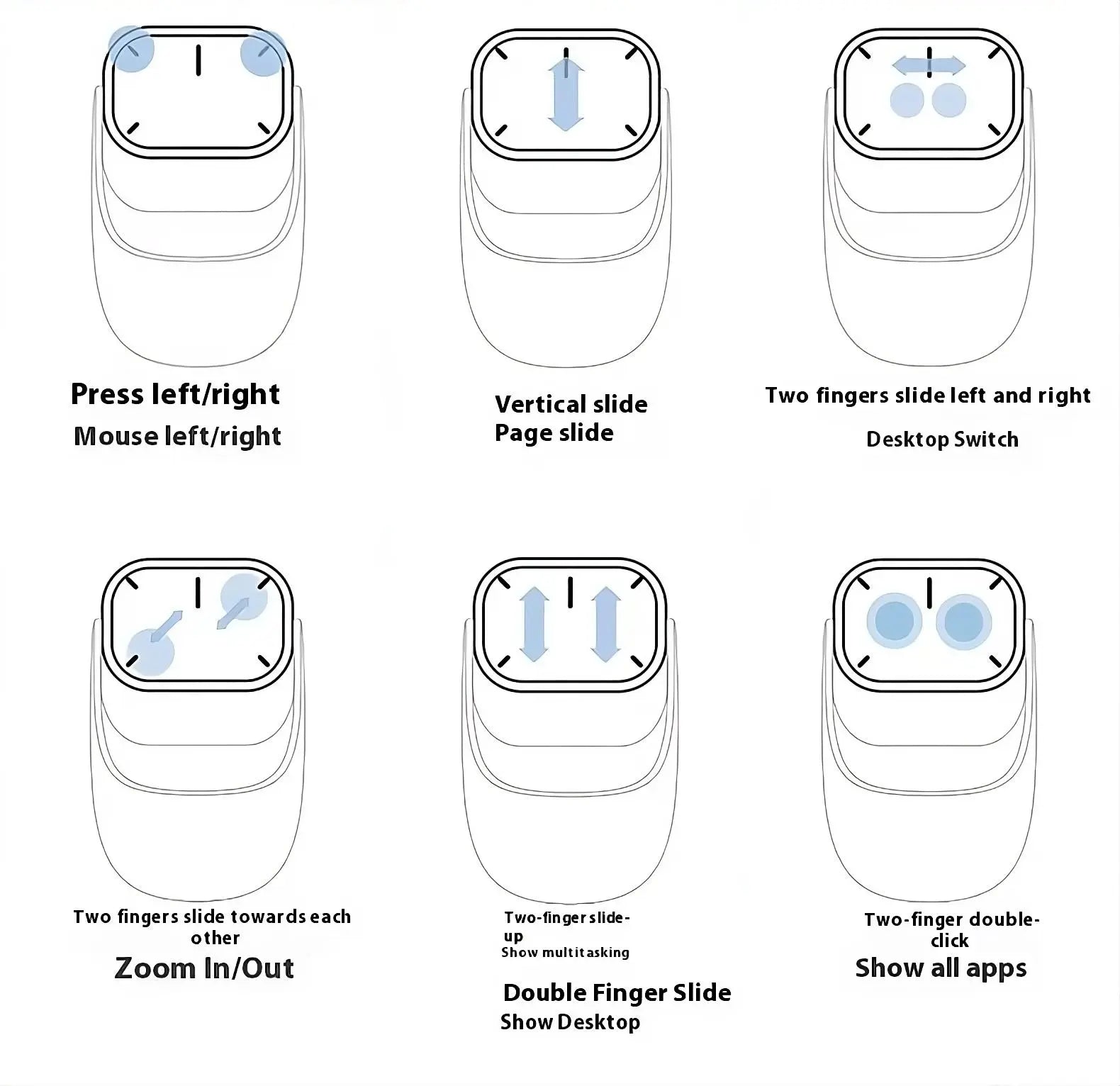 Show Desktop: Two-finger slide for instant desktop access.